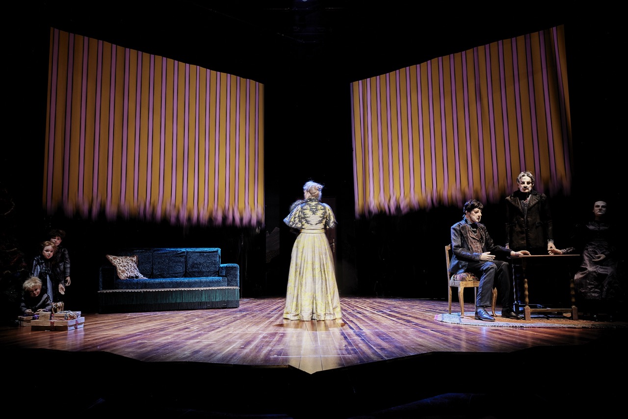 Yngvild Aspeli traduit les émotions de la pièce avec une grande inventivité et justesse entrainant le spectateur dans son cauchemar jusqu’à ne plus savoir qui manipule qui. Directrice artistique de la compagnie Plexus Polaire basée en France et depuis 2022 du Nordland Visual Theatre / Figurteatret i Nordland en Norvège, elle s’est formée à l’école Jacques Lecoq et à l’Institut international de la Marionnette à Charleville-Mézières. Dans un court récit d’introduction, Yngvild Aspeli vient elle-même sur scène pour dire que l’idée de la pièce, Une Maison de poupée lui est venue grâce à un oiseau qui cognait contre la vitre alors qu’elle lisait. Norvégienne, comme Ibsen, elle sert de manière personnelle et puissante la dramaturgie de la pièce, dans un spectacle d’une grande beauté plastique.