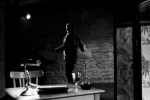 Spectacle théâtral autour des Fleurs du mal et autres textes de Charles Baudelaire – conception et mise en scène Christian Rémer – jeu Sébastien Vuillot – création musicale Tristan Michelin, chant Camille Bougheraba – compagnie Tsurukam.