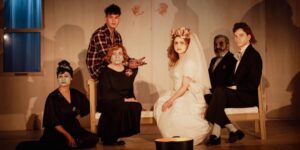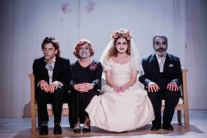 Le quotidien des jours de guerre, d’un autre côté des jours de fête, se dessine. Entre la jeune mariée qu’on voit enfin, robe blanche, lancers de pétales de roses sous les youyous, photo de famille avant évanouissement. Seul grand absent, le fiancé qui, peut-être, n’a jamais existé. Jusqu’à l’apparition subite d’un jeune homme somptueusement coiffé – ou plutôt crêté – visage du frère plutôt que fiancé. Dans ce travestissement de la vérité tricoté par Wajdi Mouawad, entre mythomanie et sauve-qui-peut, on a du mal à distinguer le vrai du faux. Au final, Neel reçoit une balle, la mère explose.
