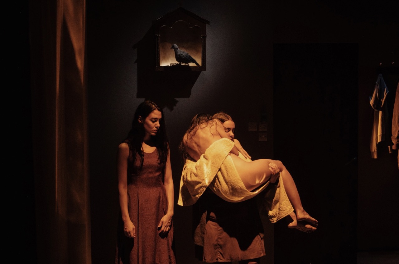 À pas lents la mère se dirige vers le lit, on dirait qu’elle a cent ans. La jeune femme – une de ses filles, la prend dans les bras. Elle s’étend. Mario Banushi – jeune metteur en scène né en Albanie où il a grandi jusqu’à l’âge de six ans, élevé par sa grand-mère avant que sa mère ne l’amène en Grèce, où il s’est ensuite formé pour le théâtre au conservatoire d’Athènes – invente un théâtre de silence et de visions, nourri de ses souvenirs d’enfance entre les deux pays.